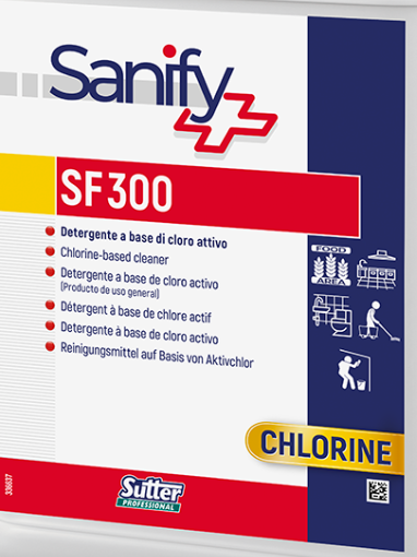 Detergente desinfectante a base de cloro activo para la desinfección en áreas alimentarias. SF 300 tiene un óptimo poder blanqueante y desmanchante. Para limpieza de pavimentos, toilets, planchas, bancos de trabajo, etc.