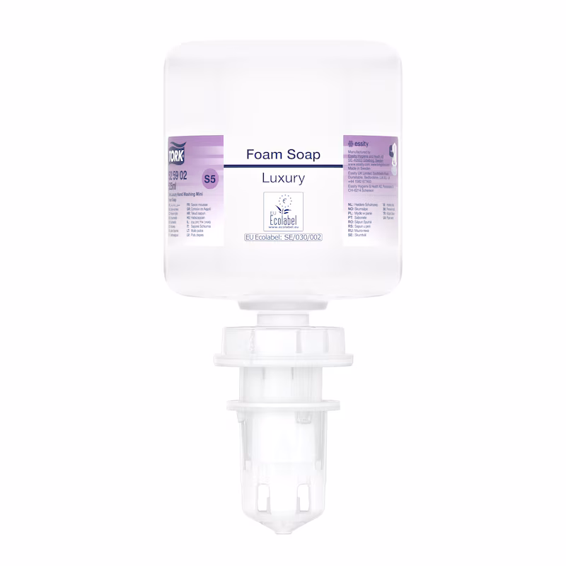 Ofrece a los visitantes un toque sofisticado con el jabón en espuma luxury de Tork. Se elabora mediante una fórmula única con aroma y se enriquece con extracto natural de magnolia e ingredientes hidratantes para ofrecer un lavado de manos cremoso y agradable. Se puede utilizar con los dispensadores mini Tork de jabón y desinfectante, que cuentan con la certificación Easy to use y proporcionan una buena higiene de manos a todos los usuarios.